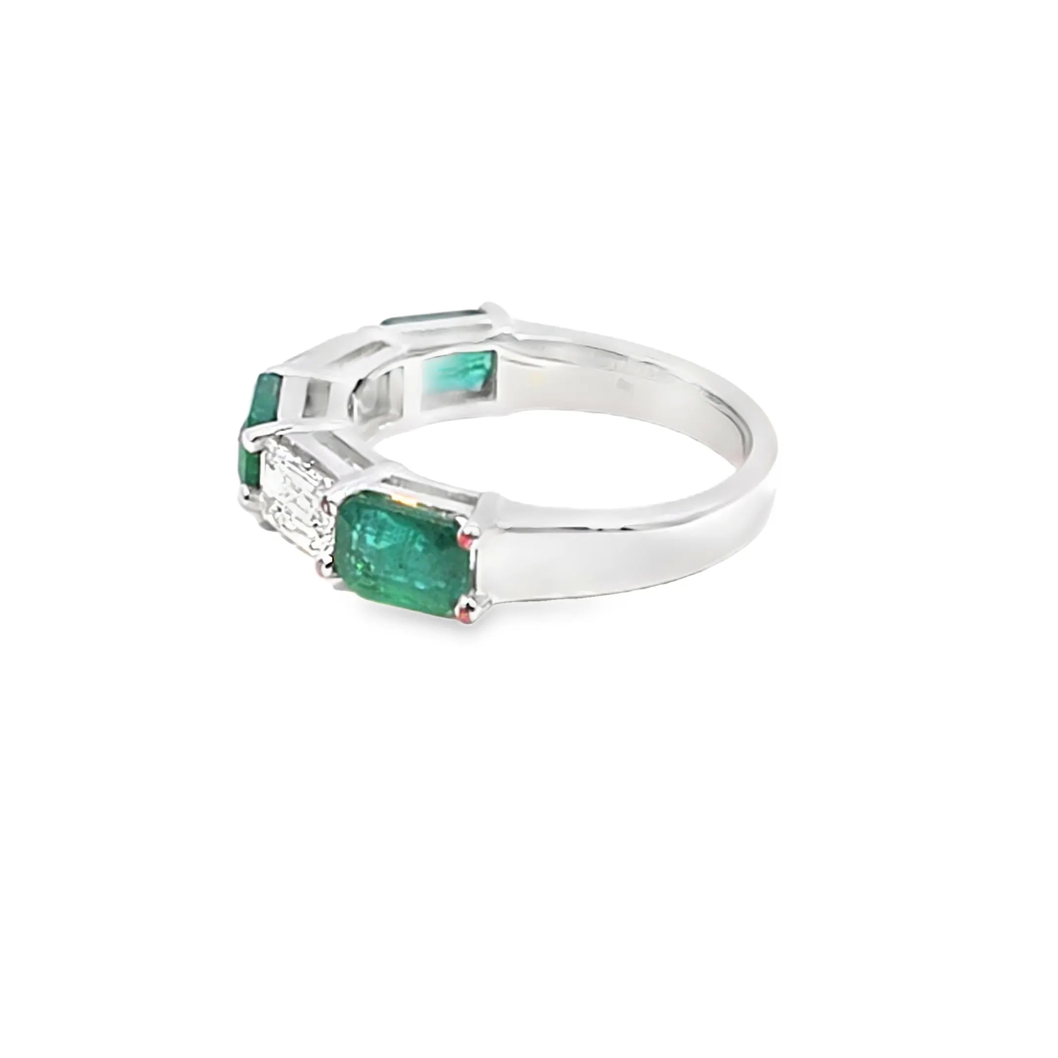 Anillo de dama confeccionado en oro de 14K con acabado oro blanco. Presenta un diamante de 1.01 quilates como piedra central, complementado por una esmeralda de 1.38 quilates que realza su elegancia. Esta combinación de gemas de alta calidad crea una pieza sofisticada y versátil, ideal para ocasiones especiales o como joya de inversión. El diseño equilibrado destaca la belleza natural de ambas piedras preciosas, garantizando brillo y durabilidad en el tiempo.
