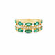 Este anillo para dama, elaborado en oro amarillo de 14 quilates, destaca por su elegante combinación de gemas preciosas: 0.97 quilates en diamantes y 0.82 quilates en esmeraldas. Su diseño sofisticado realza la belleza natural de las piedras, ofreciendo un accesorio que aporta distinción y brillo en cualquier ocasión. Ideal para quienes buscan una pieza de alta calidad que combine lujo y estilo atemporal.