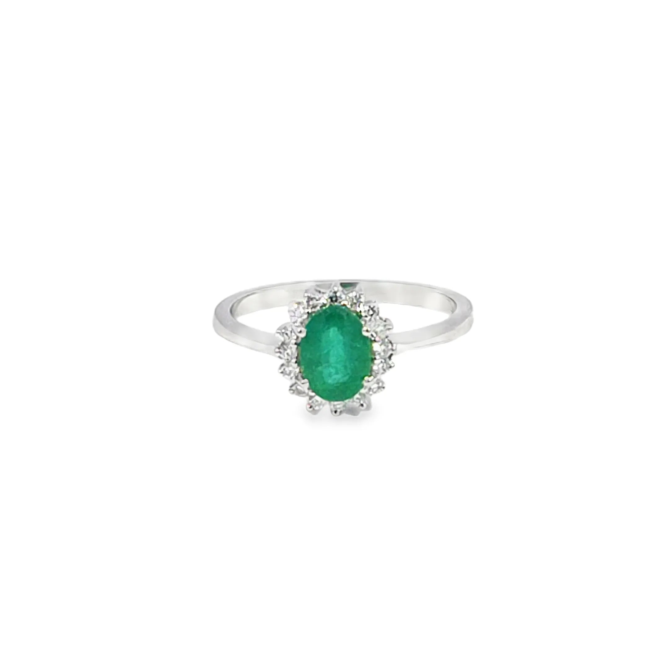 Anillo dama en oro blanco de 14K con diamante de 0.14CT y esmeralda de 0.77CT