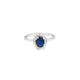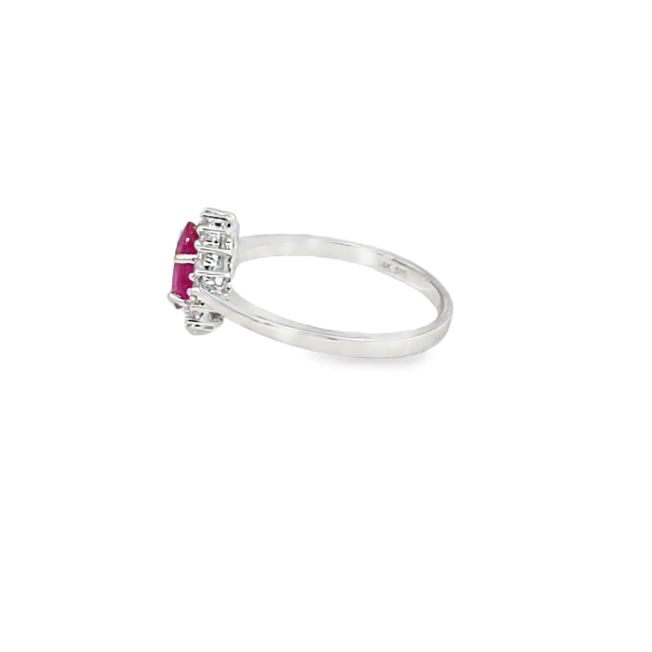 Anillo dama en oro blanco de 14K con diamante de 0.14CT y rubí de 1.10CT