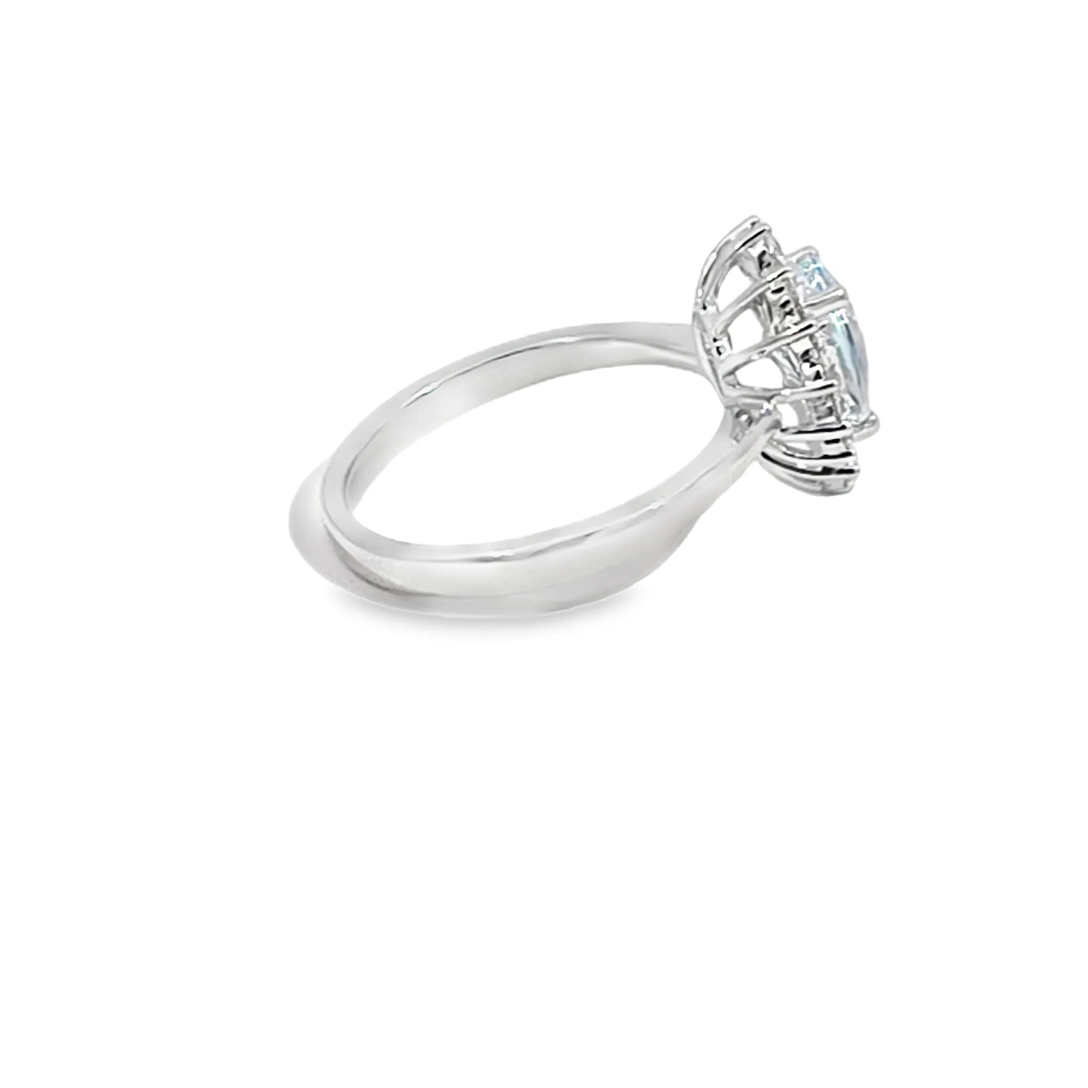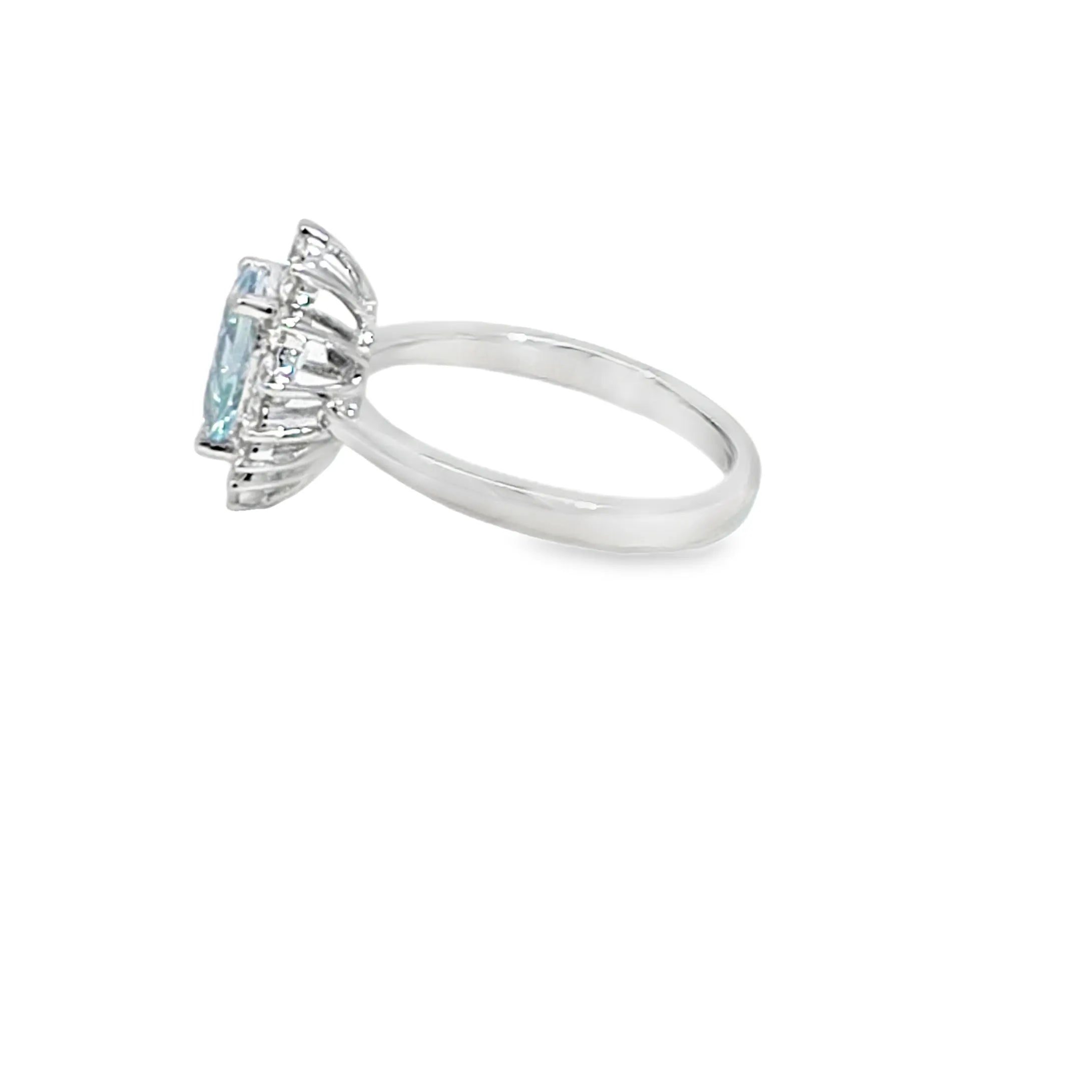 Anillo de oro blanco de 18K con diamante de 0.38 ct y aguamarina de 0.95 ct, diseño celestial