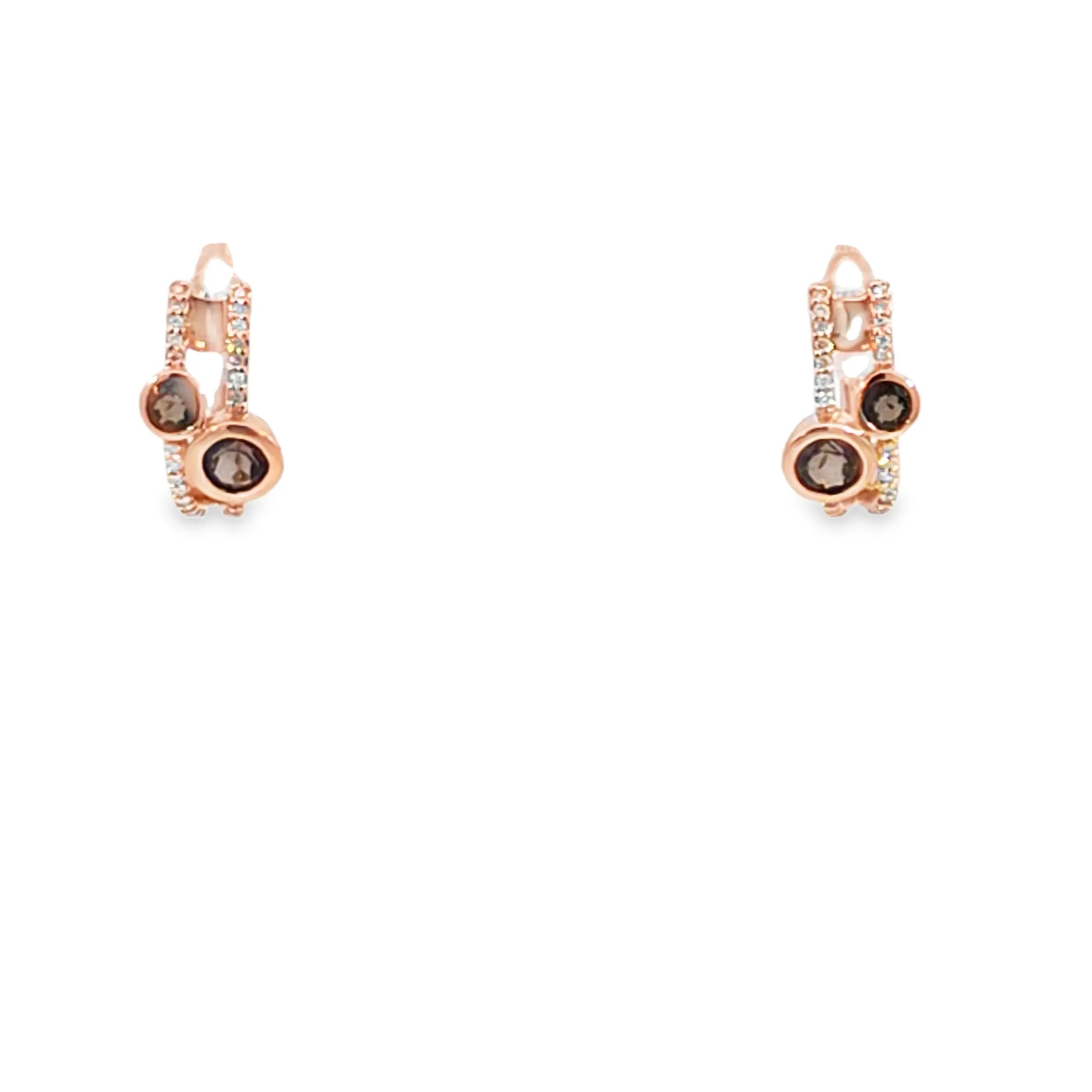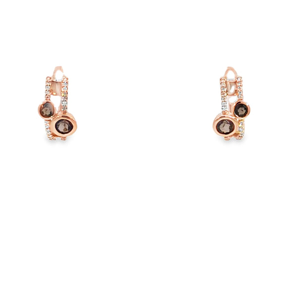 Aretes de oro de 14K con diamante de 0.13 ct y cuarzo ahumado, estilo místico