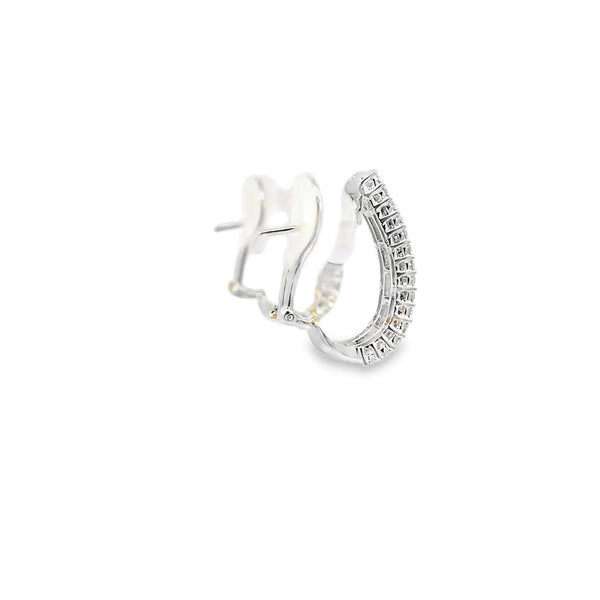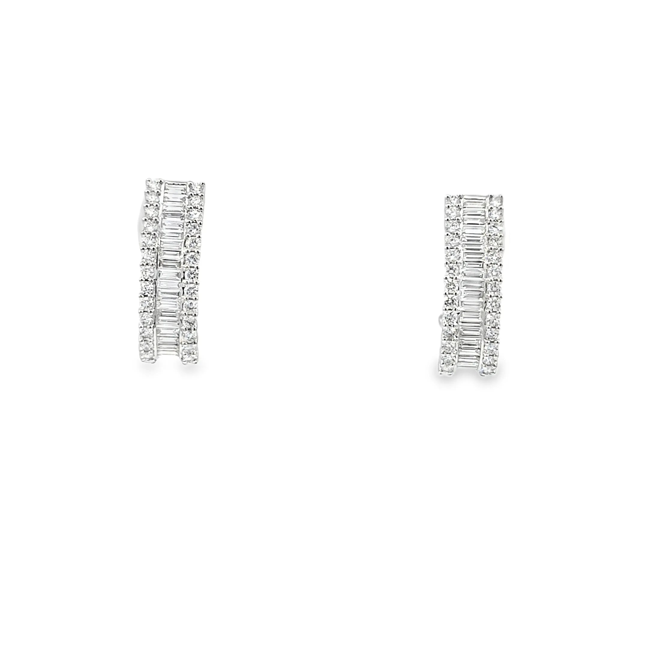 Estos aretes en oro blanco de 14K presentan un diseño sofisticado realzado por diamantes que totalizan 2.13 quilates, ofreciendo un brillo excepcional y una elegancia atemporal. Perfectos para quienes valoran la calidad y el lujo discreto, combinan resistencia y estilo para complementar cualquier ocasión especial.