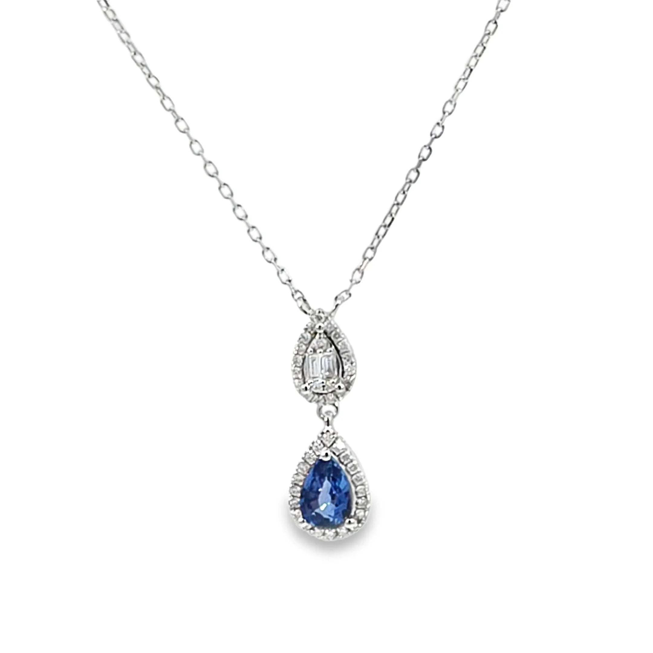 Dije de oro blanco de 14K con diamante de 0.11 ct, zafiro de 0.56 ct, lujo refinado