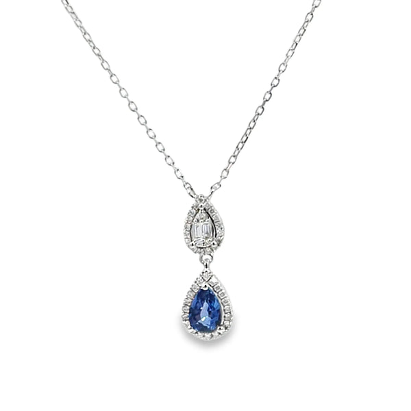 Dije de oro blanco de 14K con diamante de 0.11 ct,zafiro de 0.56 ct, lujo refinado