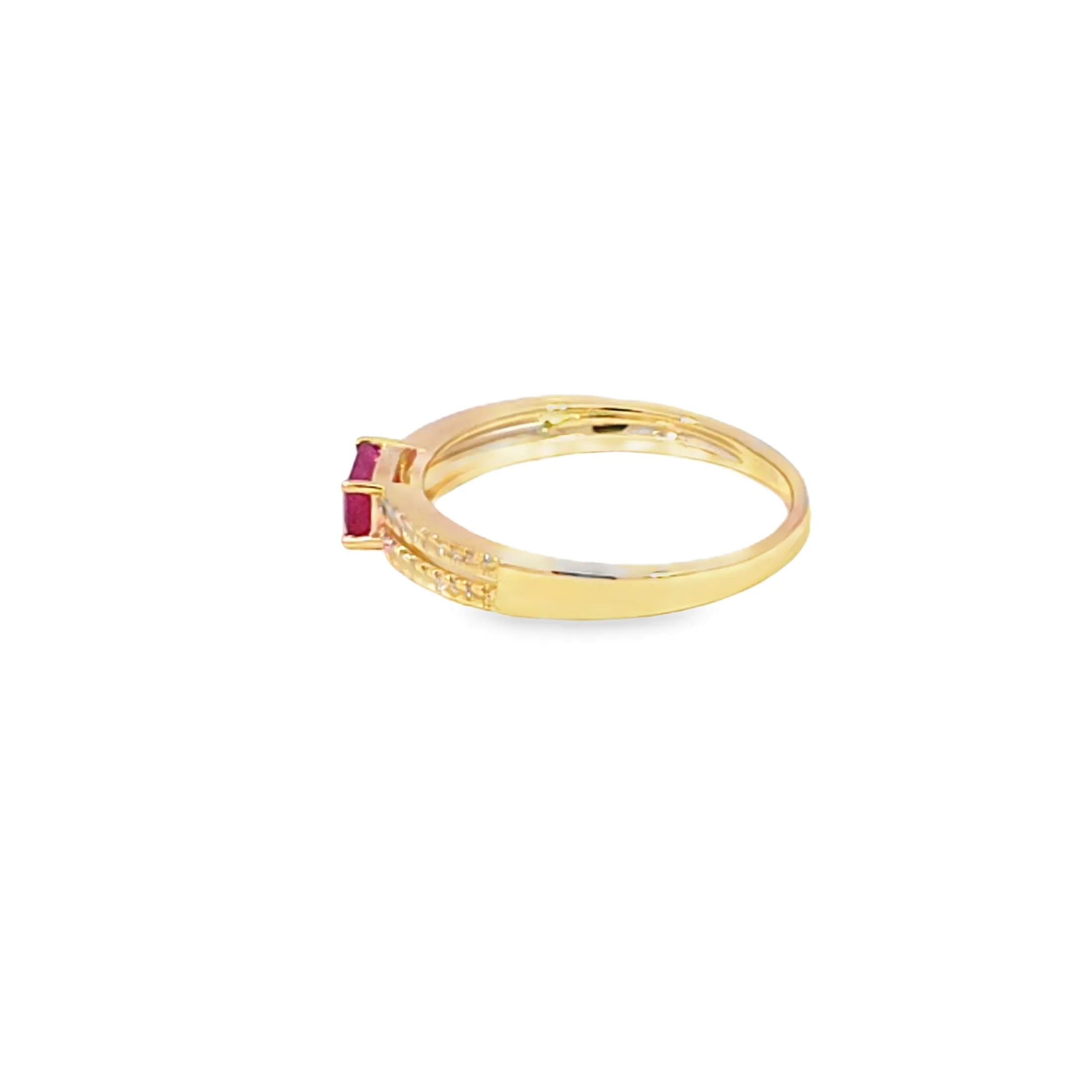 Anillo dama en oro amarillo de 14K con diamante de 0.10CT y rubí de 0.25CT