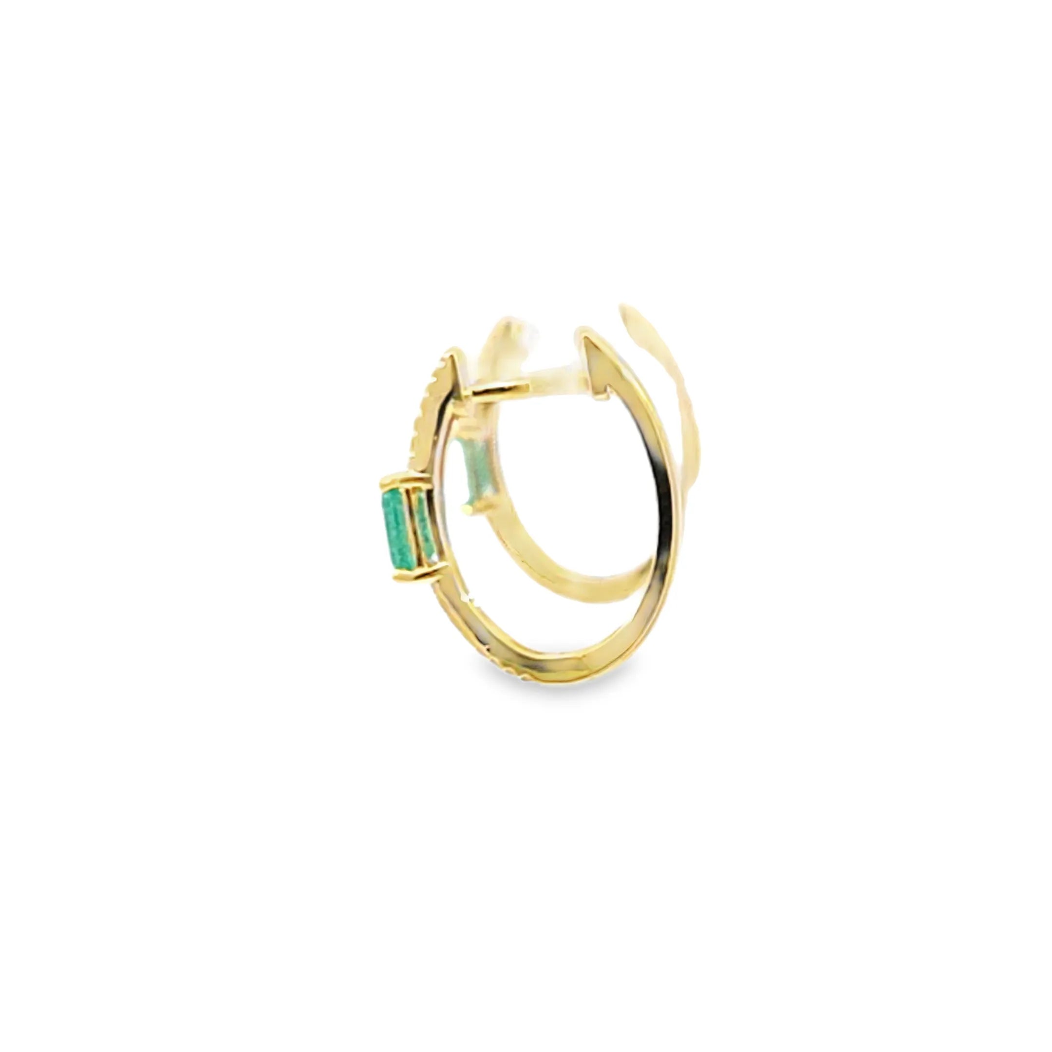 Estos aretes en oro amarillo de 14K combinan la elegancia del diamante de 0.14CT con la riqueza de la esmeralda de 0.67CT, ofreciendo un diseño sofisticado y duradero. Perfectos para quienes buscan una joya que refleje distinción y calidad superior.