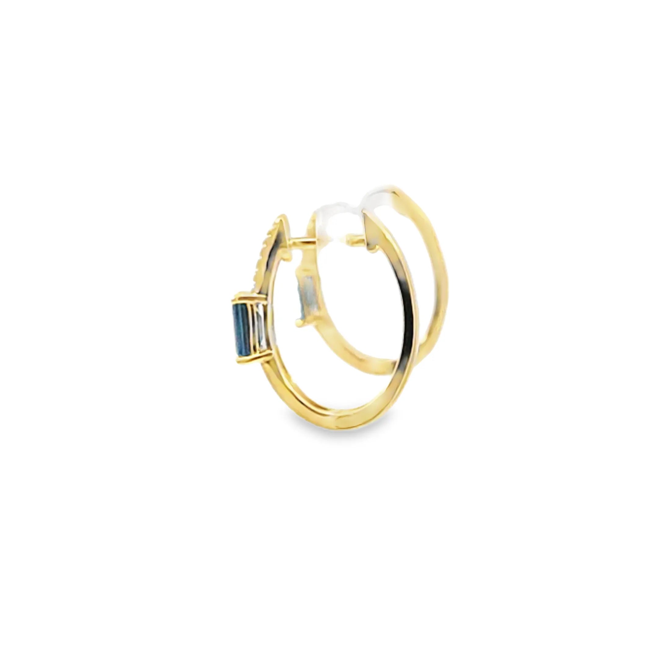 Aretes en oro amarillo de 14K con diamante de 0.15CT y topacio azul de 0.65CT