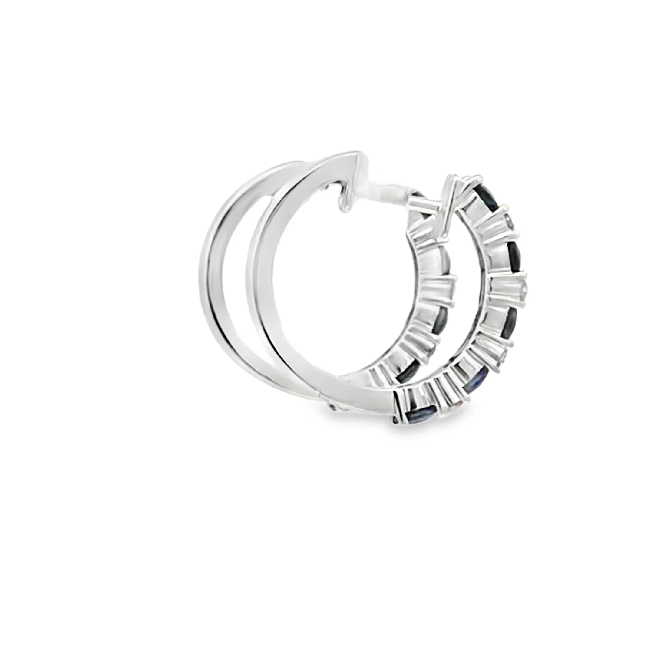 Estos exclusivos aretes en oro blanco de 18K combinan elegancia y sofisticación, destacando un diamante de 0.18CT que brinda un brillo sutil y refinado, complementado por un vibrante zafiro de 1.25CT que aporta profundidad y color. Perfectos para quienes buscan una joya atemporal que realce cualquier ocasión con un diseño equilibrado y materiales de alta calidad.