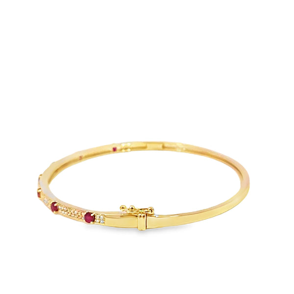 Brazalete en oro amarillo de 14K con diamante de 0.27CT y rubí de 0.48CT
