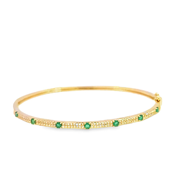 Brazalete en oro amarillo de 14K con diamante de 0.28CT y esmeralda de 0.38CT