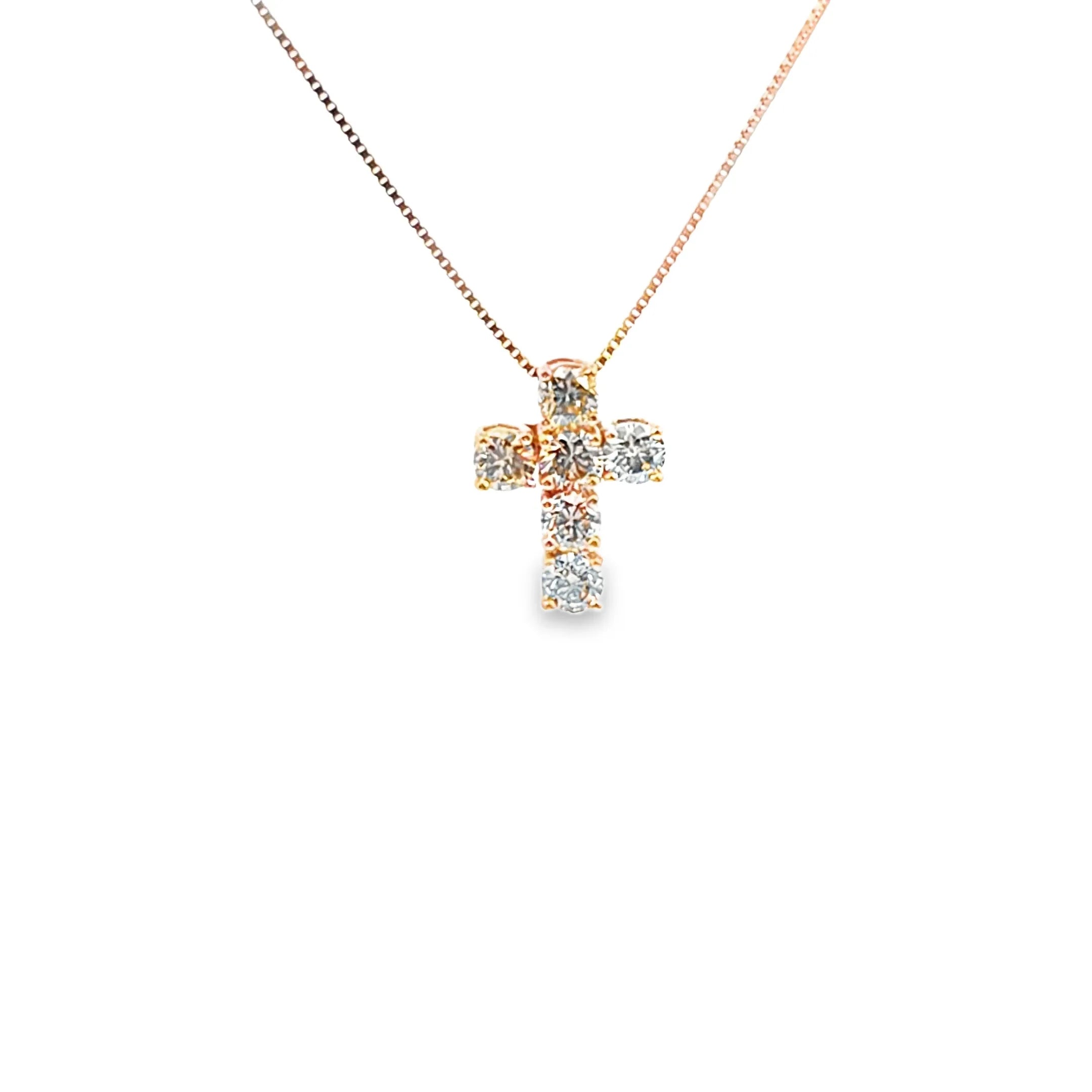 Cruz elegante elaborada en oro de 14K que combina diseño clásico con brillo contemporáneo. Presenta un diamante de 0.59 quilates certificado, seleccionado por su claridad y brillantez excepcionales. La cadena, confeccionada en oro de 14K, ofrece durabilidad y resistencia para uso diario. Este símbolo de fe y distinción se destaca por su acabado pulido que realza el resplandor del diamante. Pieza versátil que funciona tanto para ocasiones especiales como para complementar tu estilo cotidiano. Una inversión en joyería de calidad que trasciende tendencias.
