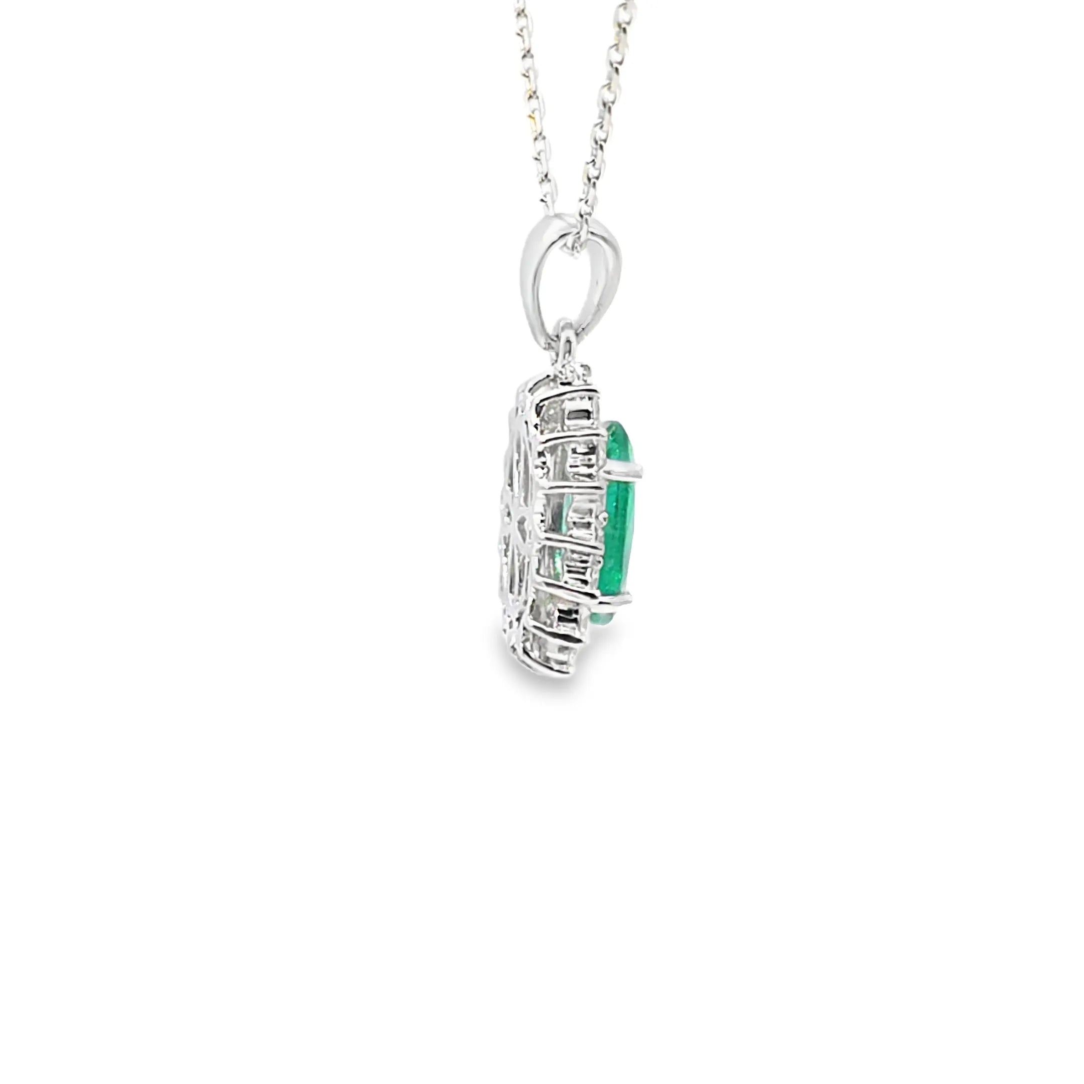 Elegante dije elaborado en oro de 14 quilates con acabado pulido brillante, engarzado con un diamante de 0.60 quilates de excepcional claridad y brillo. Complementa la pieza una esmeralda natural de 2.10 quilates, seleccionada por su color verde intenso y vibrante. Incluye cadena a juego que realza la sofisticación del diseño. Pieza ideal para ocasiones especiales o como inversión en joyería fina de calidad certificada.