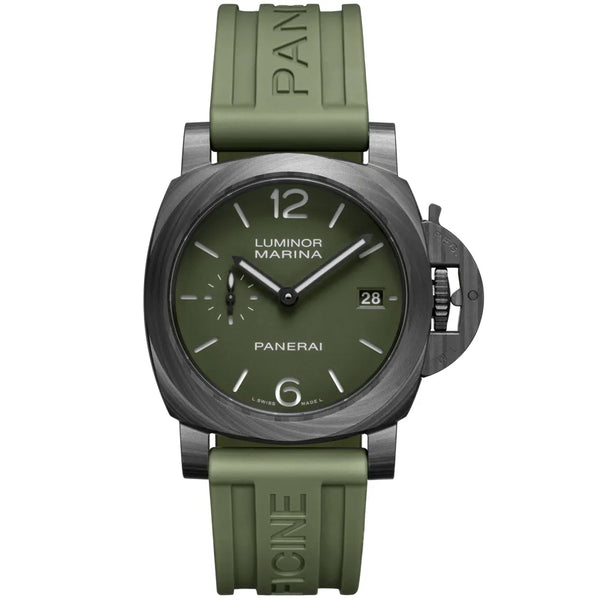 El Reloj Panerai Luminor de carbono automático de 40 mm en verde combina innovación y diseño sofisticado. Su caja de carbono ofrece ligereza y resistencia, mientras que el movimiento automático garantiza precisión y comodidad sin necesidad de cuerda manual. Con un diámetro de 40 mm, es ideal para quienes buscan un reloj elegante y funcional, perfecto para uso diario o coleccionistas exigentes. El distintivo color verde aporta un toque moderno y exclusivo a esta pieza de alta relojería.